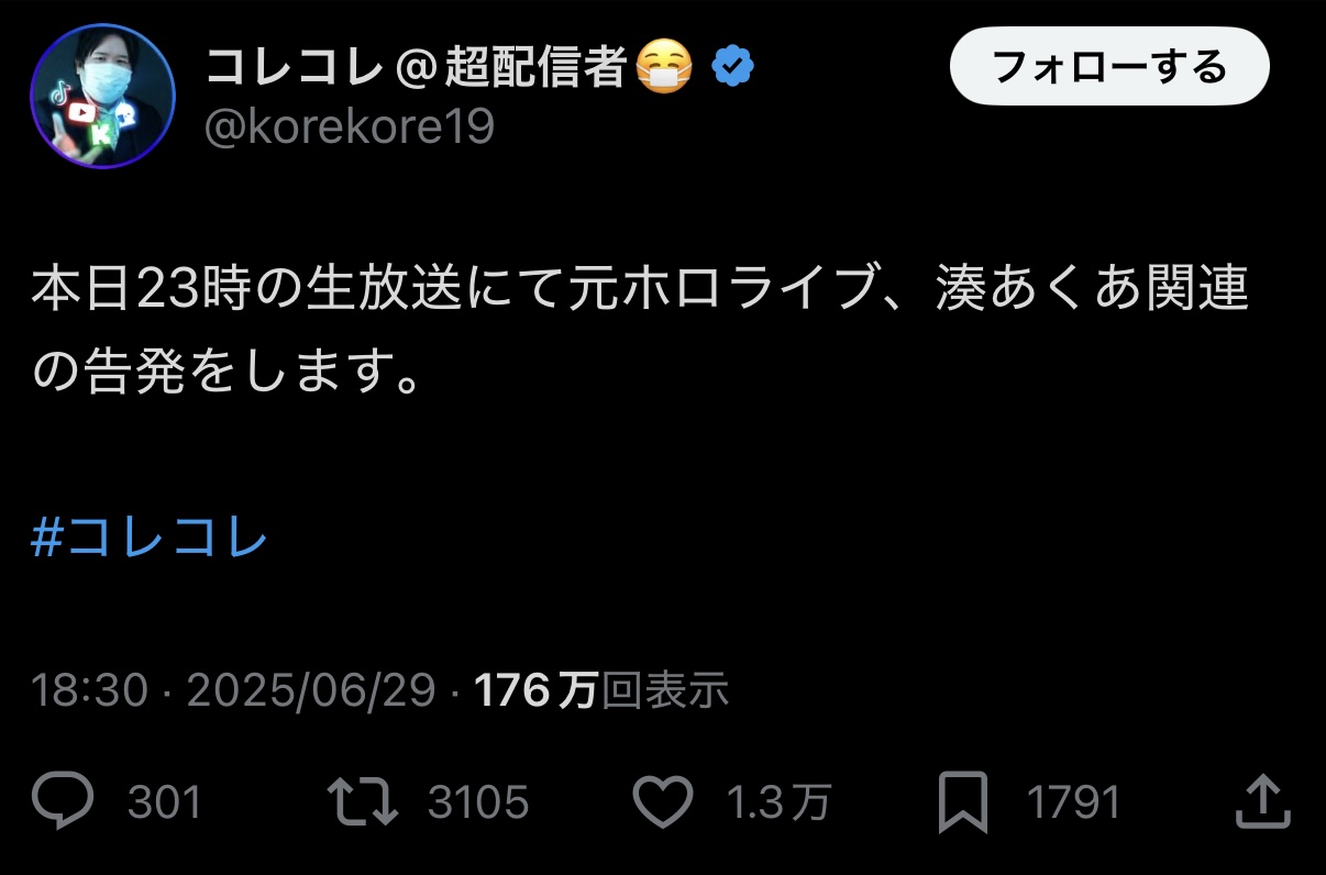 | … | 57625/06/30(月)00:23:11No.1328467624そうだねx2>コレコレってだいぶ影響力落ちたんだね |