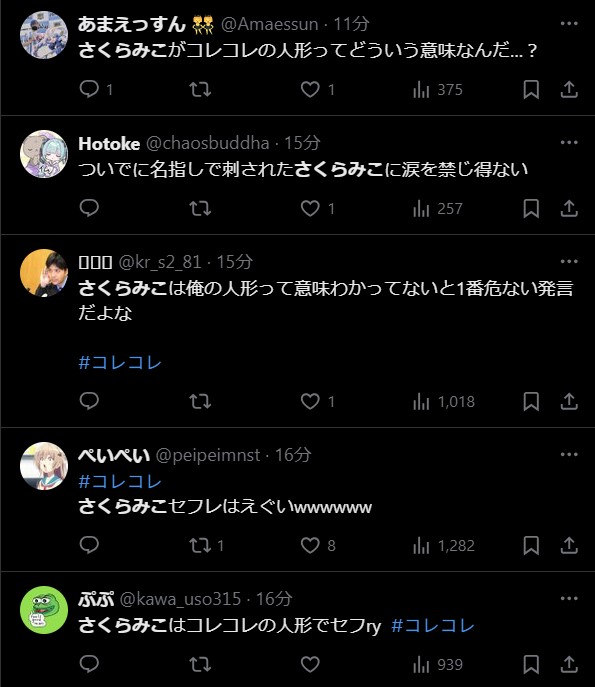 | … | 55525/06/30(月)00:18:53No.1328466304そうだねx1コレコレってだいぶ影響力落ちたんだね |