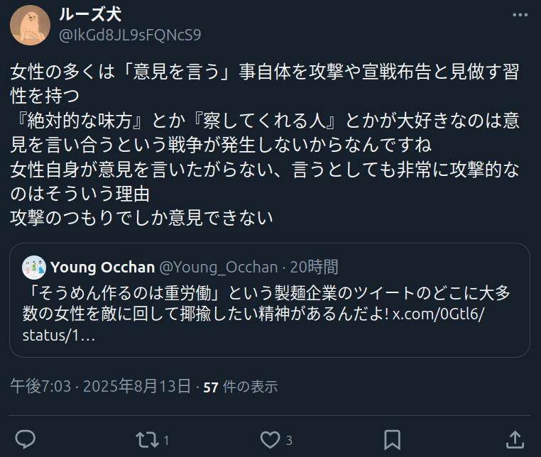 | … | 2425/08/13(水)19:29:29No.1342849581+ネットに限っては他人に意見を述べる人って大体うっすら戦い人って認識がある |
