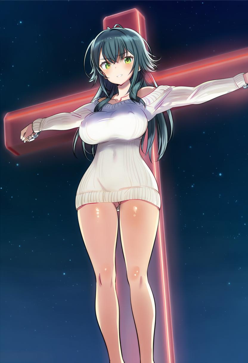 | … | 4025/09/10(水)10:29:14No.1351763289+>crucifixion with a translucent red glowing cross |