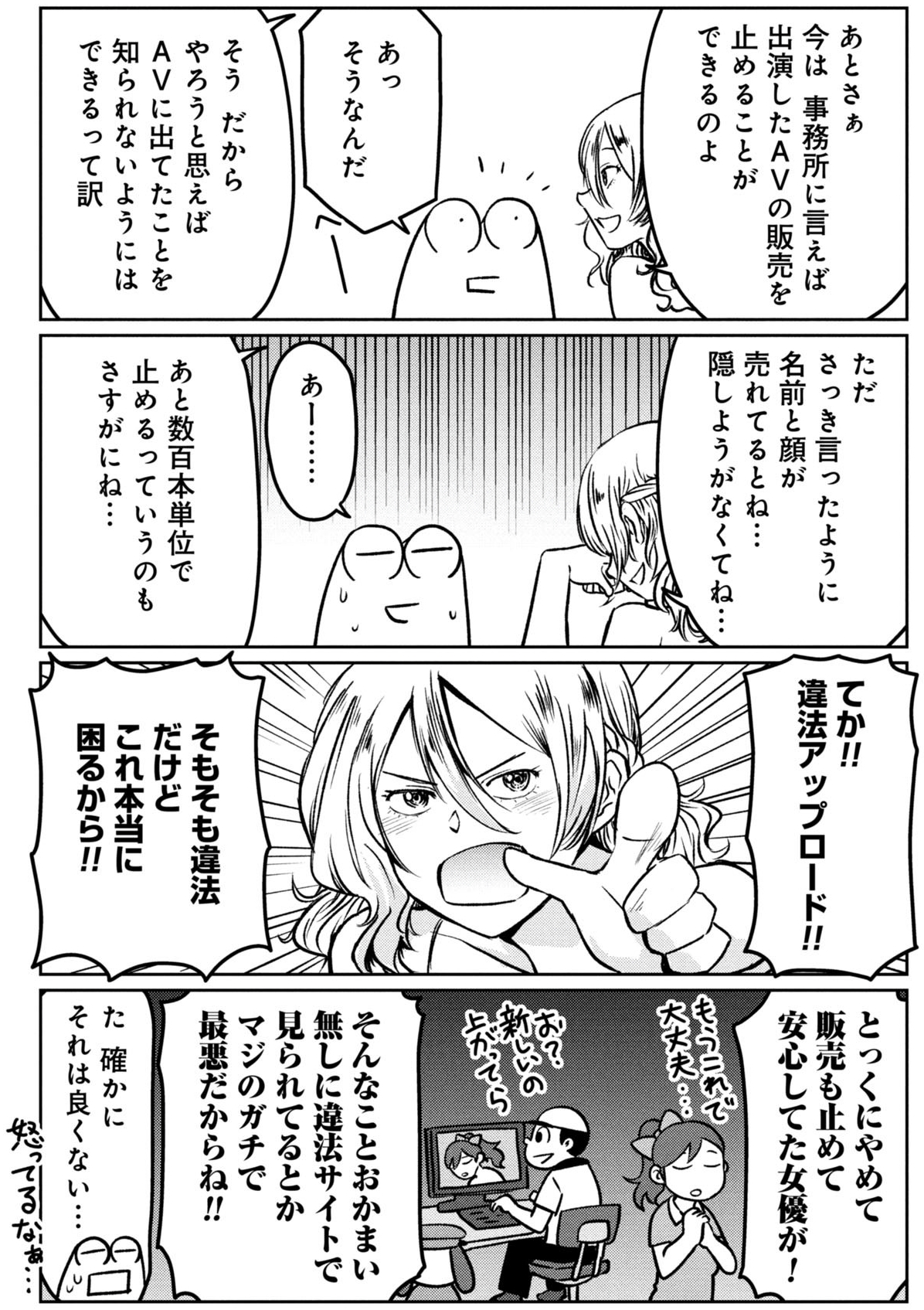 | … | 4625/09/21(日)13:07:56No.1355339828そうだねx6違法アップロードに関しては出演者じゃなくて販売業者のセリフだろ |