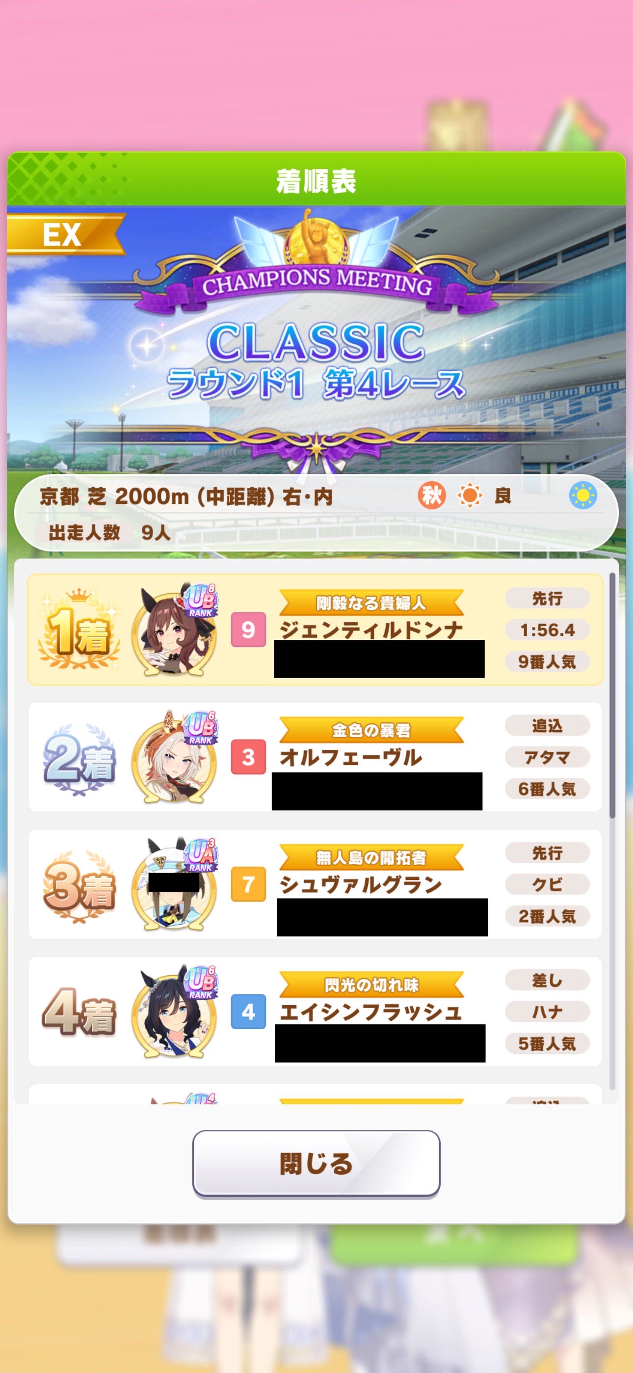 | … | 29425/09/22(月)20:07:32 ID:6Qqr2z8oNo.1355770337+>前回生まれませんでしたよ 中距離チャンミで後方脚質はポッケさんとネオユニさんの継承固有が重要になるのですが 順位条件が7位以上なので追込がかなり不利になります 実際オルフェさんは下馬評通りの活躍できませんでした |