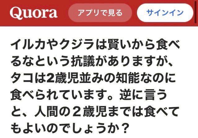 | … | 12225/09/22(月)20:15:44No.1355773696+クジラ食うなって言ってるのあんまりタコ食わない文化圏の人じゃないの |