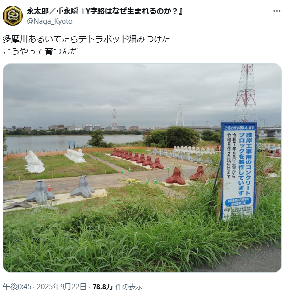 | … | 4625/09/23(火)17:23:34No.1356047868+こうして収穫された規格品のテトラポッドの裏に大量廃棄された不揃い・変型テトラポッドがあることを忘れてはいけない… |