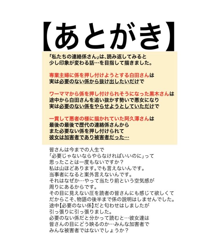 | … | 4925/09/26(金)14:25:48No.1356944664そうだねx9これを女性独特のムラ社会っていうのも違う気がする |