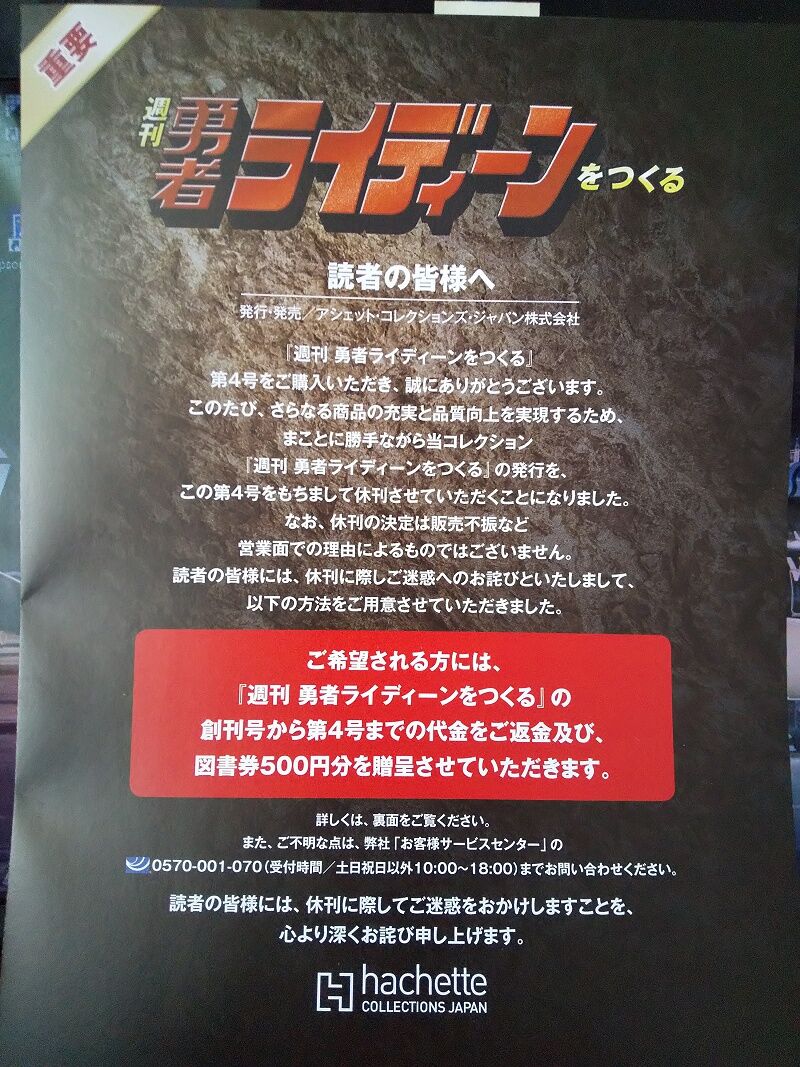 | … | 1325/09/28(日)09:02:58No.1357550469そうだねx4> デアゴスティーニやアシェットは日本全土で販売前に一部地域での試験販売(ホームページに載らない)を行い、どのくらい売れるのかを調査し採算が取れると判断された商品のみが全国版販売となります。残念ながら採算が取れないと判断された物は休刊(廃刊)となります。売れると判断された場合、デアゴスティーニは試験販売を途中で月刊化または一時停止して全国版の発売を待ちます。 |