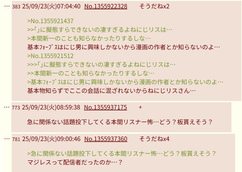 | … | 5025/09/30(火)00:18:42No.1358219394そうだねx4まじさんじになにかあった? |