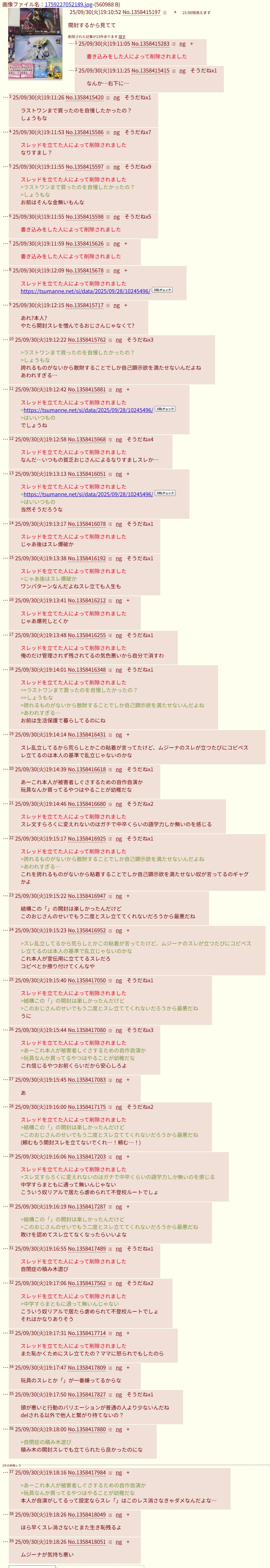 | … | 1025/09/30(火)19:34:09 ID:9FRSVOJ.No.1358424082+削除依頼によって隔離されました |
