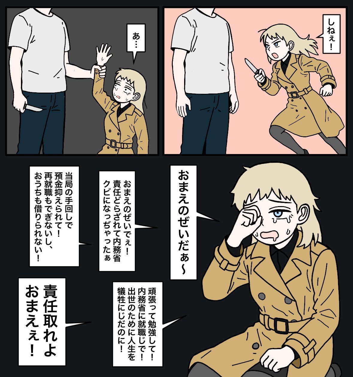 | … | 3625/10/02(木)16:28:42No.1358960201+政府の特殊部隊のリーダー格がクビで済んでるだけラッキーというかこのまま生きててもロクな目に遭わないというか… |