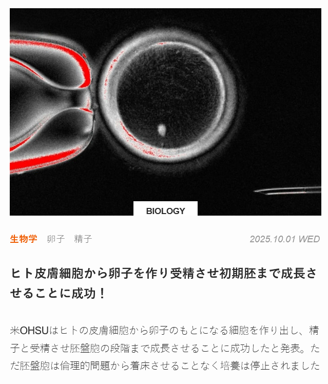 | … | 3925/10/05(日)15:43:31No.1359917168+男の皮膚からも卵子できる…? |