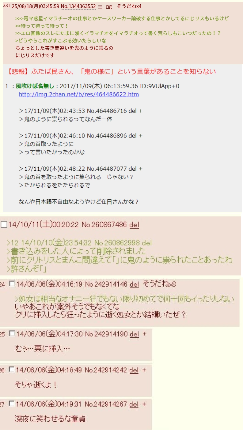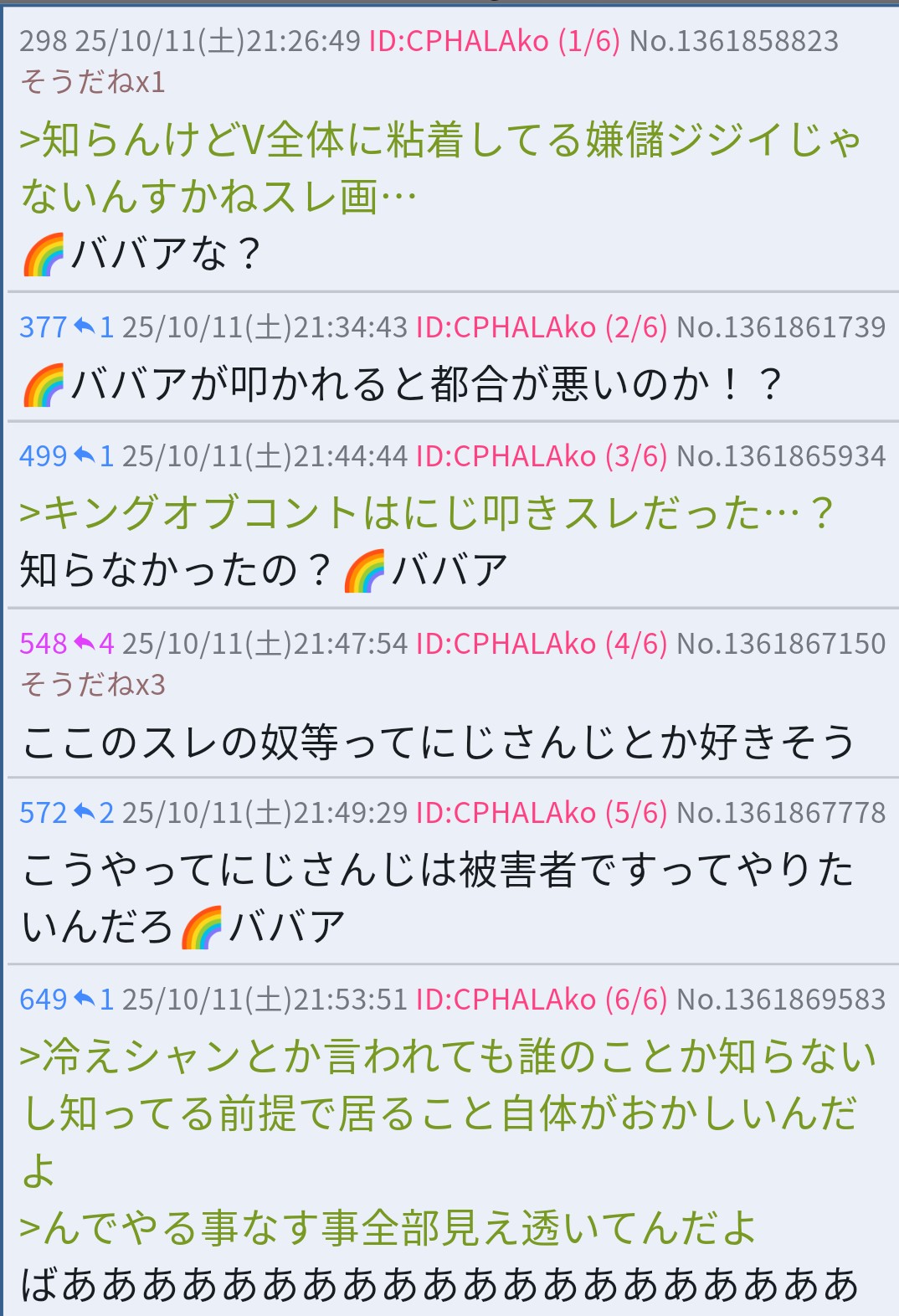 | … | 70525/10/12(日)12:43:30 ID:K4NMfl2sNo.1362050505そうだねx5>いるじゃんにじ粘着 |