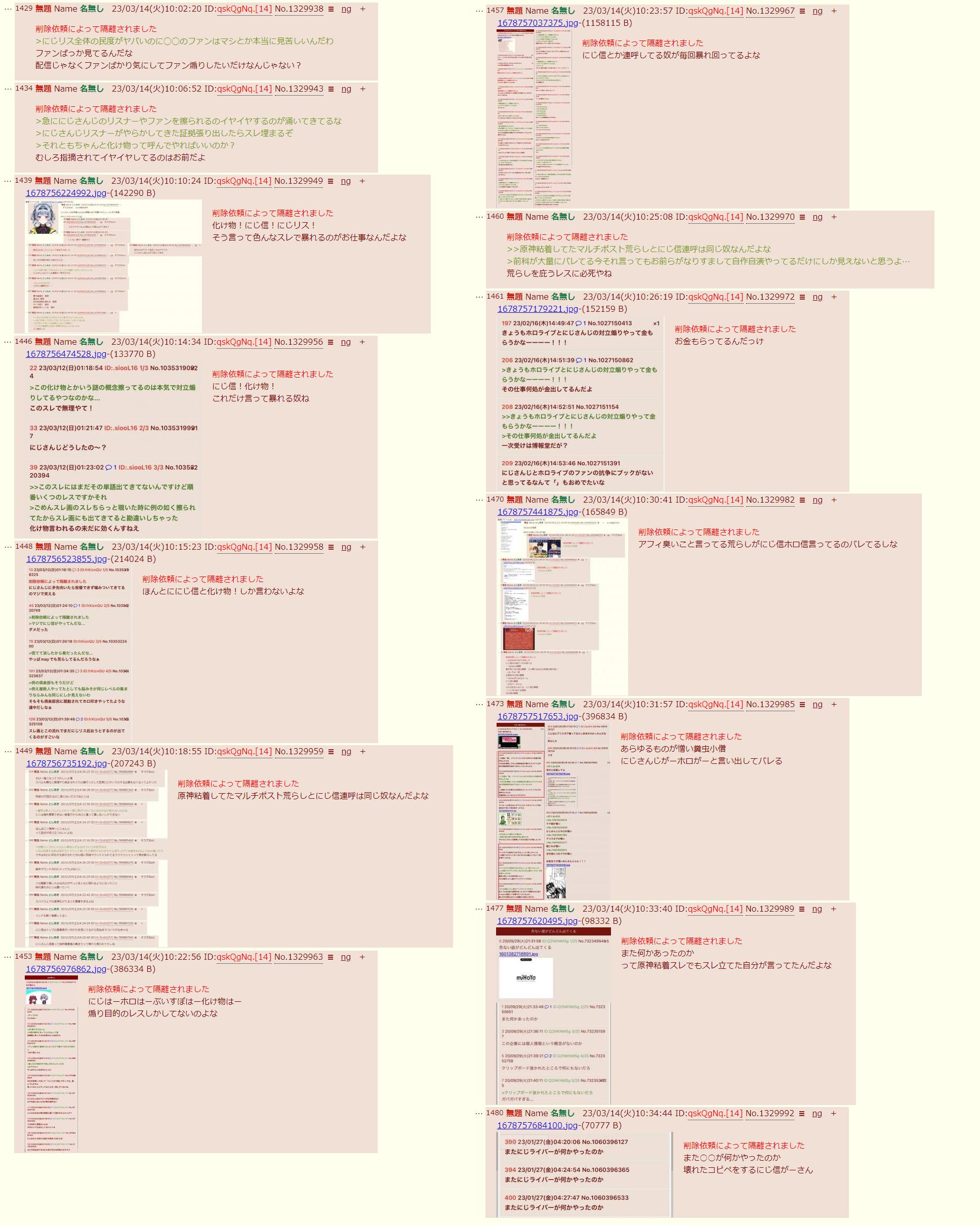 | … | 6325/10/12(日)11:34:38No.1362032566そうだねx4>にじ粘着失敗したからホロ粘着してるだけでしょ |