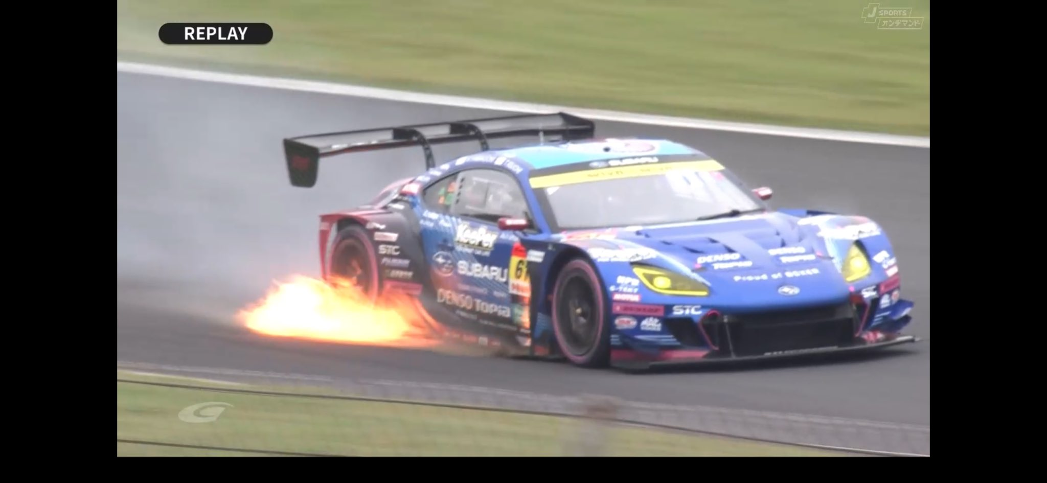 | … | 13725/10/18(土)17:00:39No.1363989737+スレ画の燃える予選が衝撃的過ぎてGTWC見るの忘れてたけどなんか今日は予選だけってアナウンスなんですけど… |