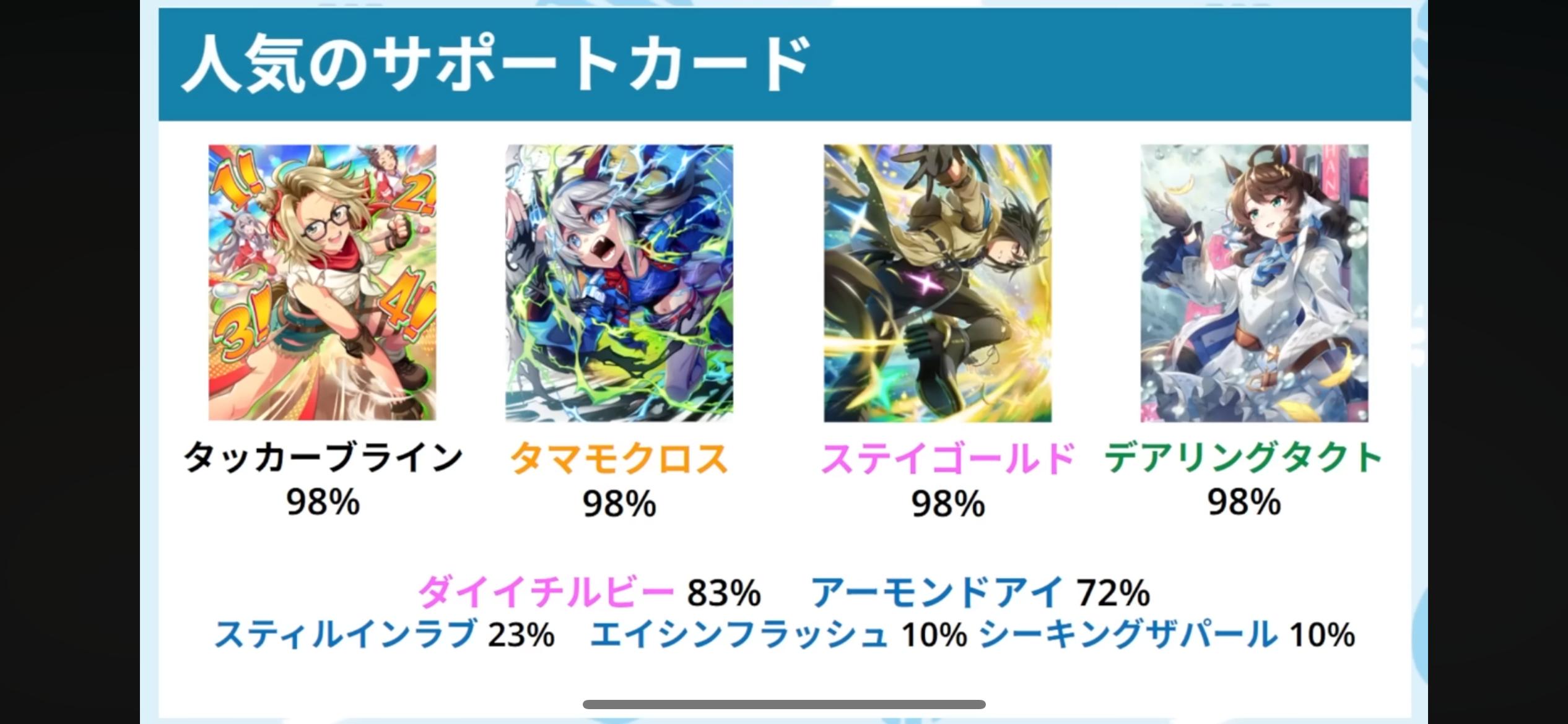 | … | 925/10/21(火)12:06:26No.1364911461+ルムマ100戦調査で夏バンブーとグランが勝率6割らしいけど差しルビーとかオグリとかパールでも勝てるのだ? |