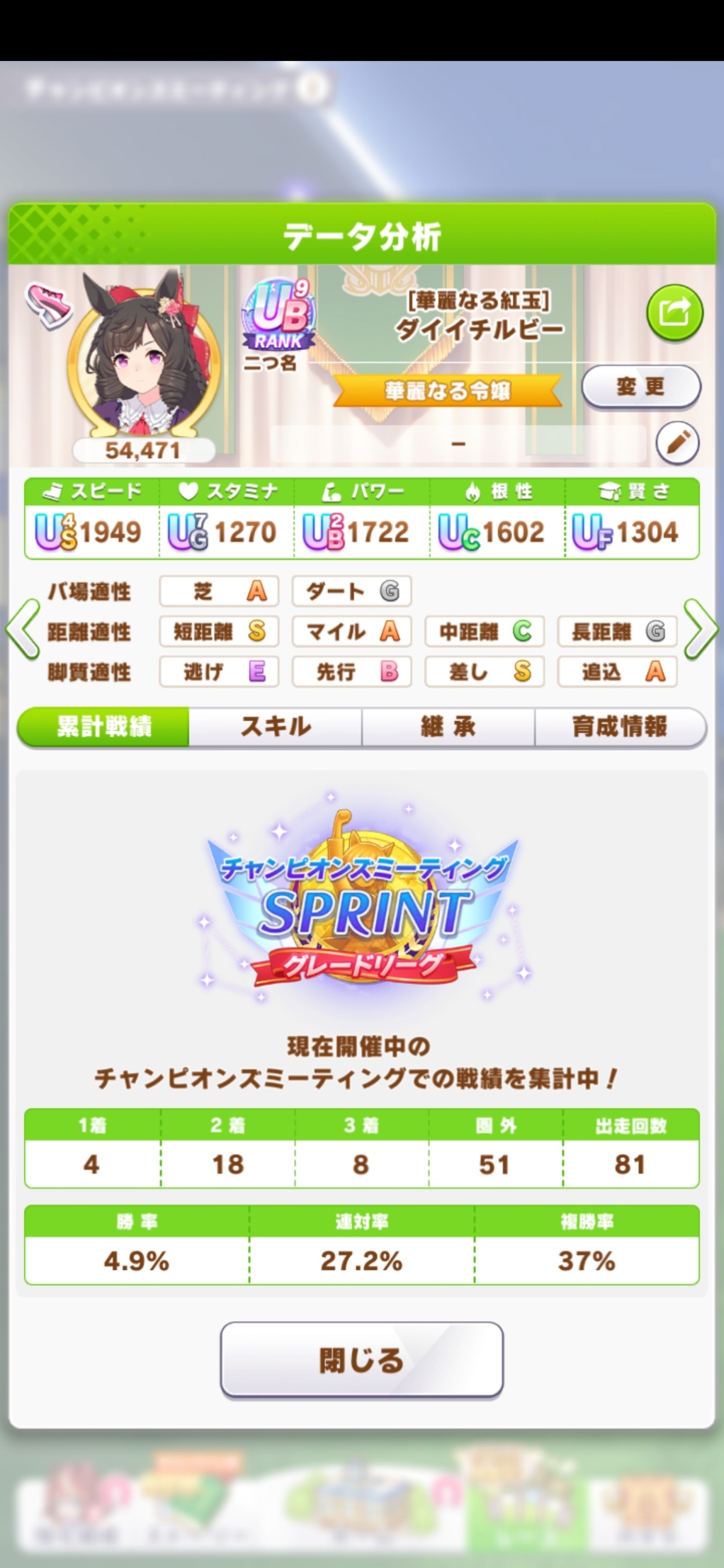 | … | 8925/10/28(火)18:40:22 ID:wJKT.u2INo.1367191788+終盤まではすごくいい展開だったんですが内ラチから来てたキングちゃんに差し切られて2位でした… |