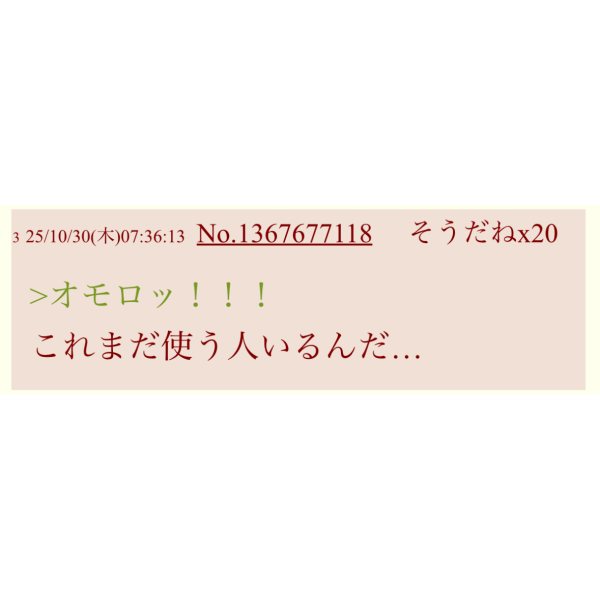 | … | 5025/10/30(木)16:38:59No.1367780950そうだねx4>オモコロスレはぶっちゃけオモコロの連中がわざわざいもげにスレ立てにきてると思ってる |