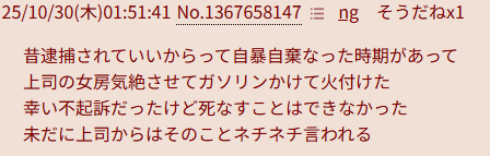 | … | 125/10/31(金)01:57:36No.1367957765そうだねx99なんで未だにその職場に居られるんだよ |