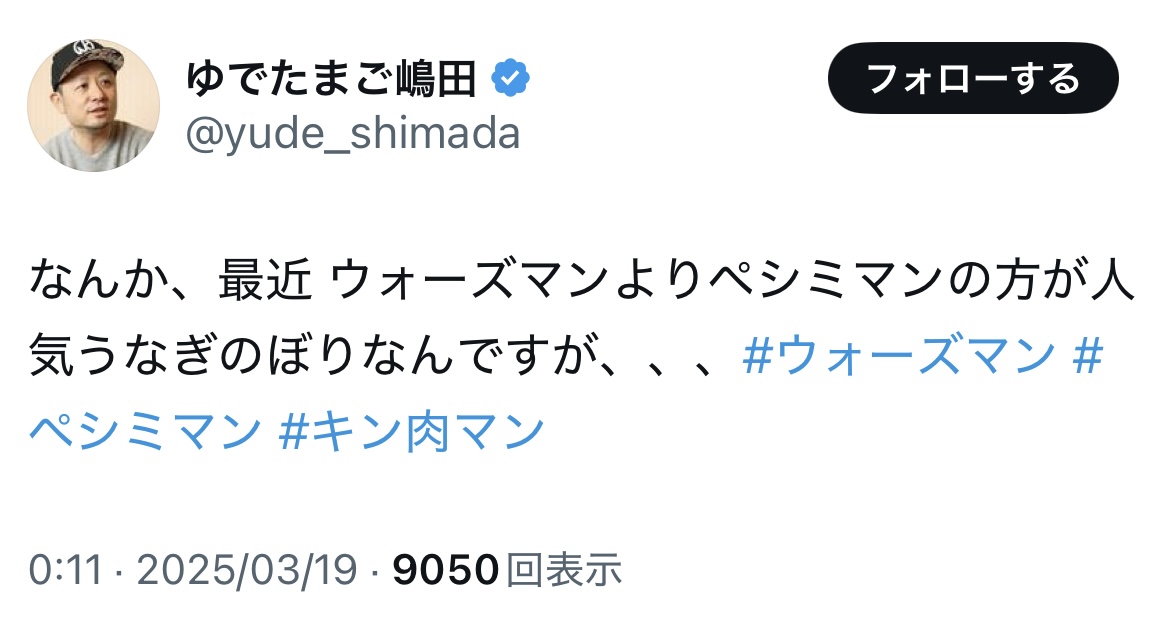 | … | 325/10/31(金)21:28:22No.1368171969そうだねx2ゆでの想定外の話をするならそもそもウォーズマン人気もよくわかってなかったじゃんか |