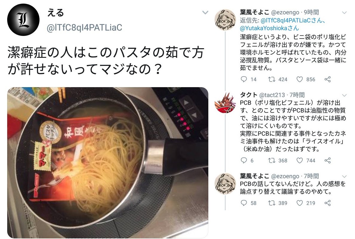 | … | 8625/11/05(水)00:47:38No.1369594778そうだねx8パスタソースの袋にPCB使われてたらゴミに出せず自宅で永久保管するしか無いじゃん |