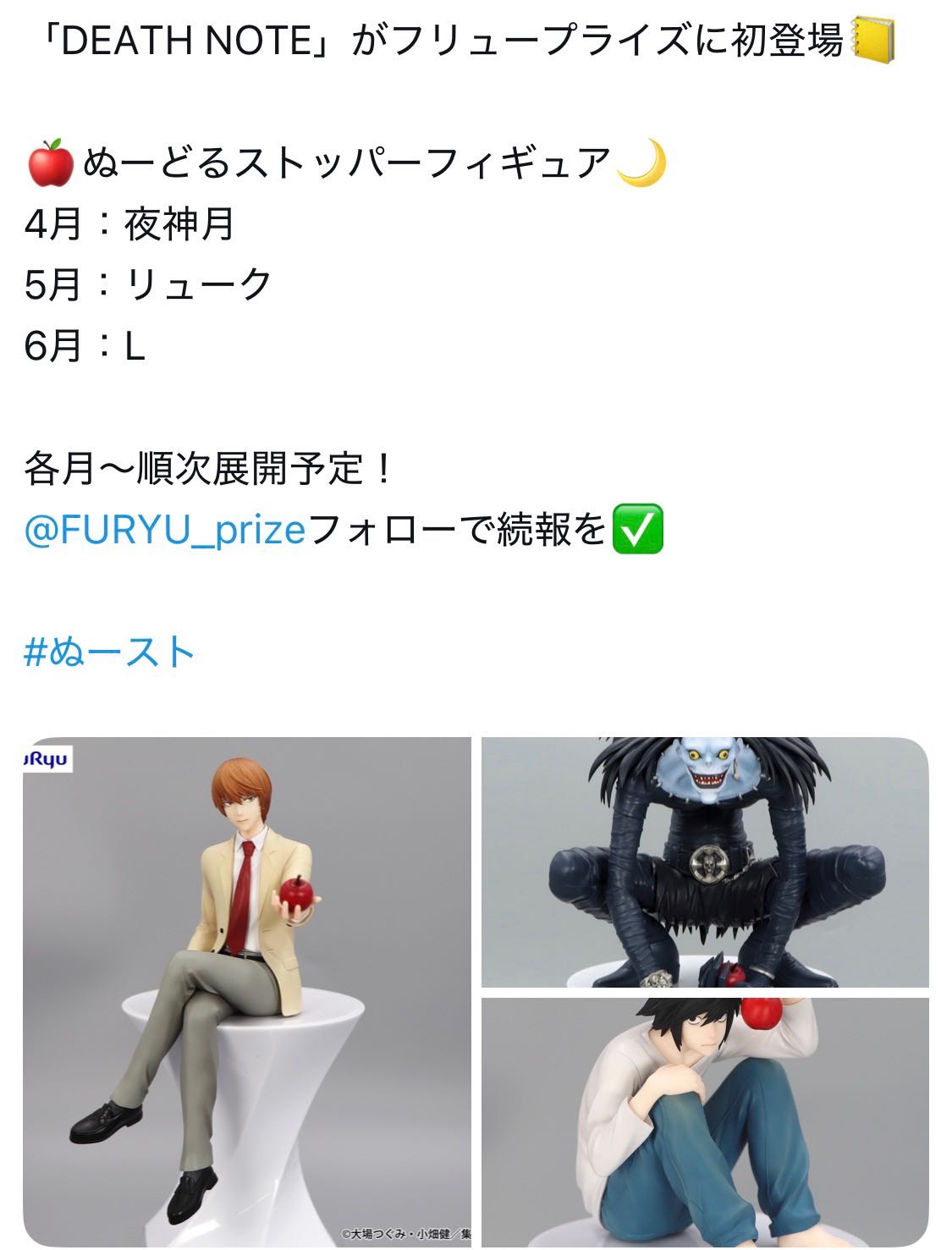 | … | 2225/11/09(日)15:50:54No.1370988230そうだねx4実際の意図がどうかは知らないけどデスノ人狼抜きでも定期的に商品出るくらいには人気作品だと思うぜ |