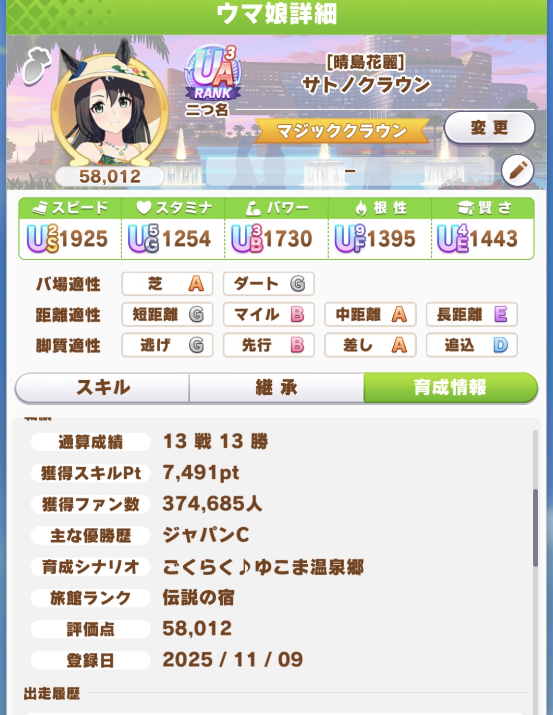| … | 7525/11/09(日)20:38:25 ID:6kZY81EUNo.1371096185+ウララちゃんでラストの有馬勝つとSP700とか入ってくるから笑えます |