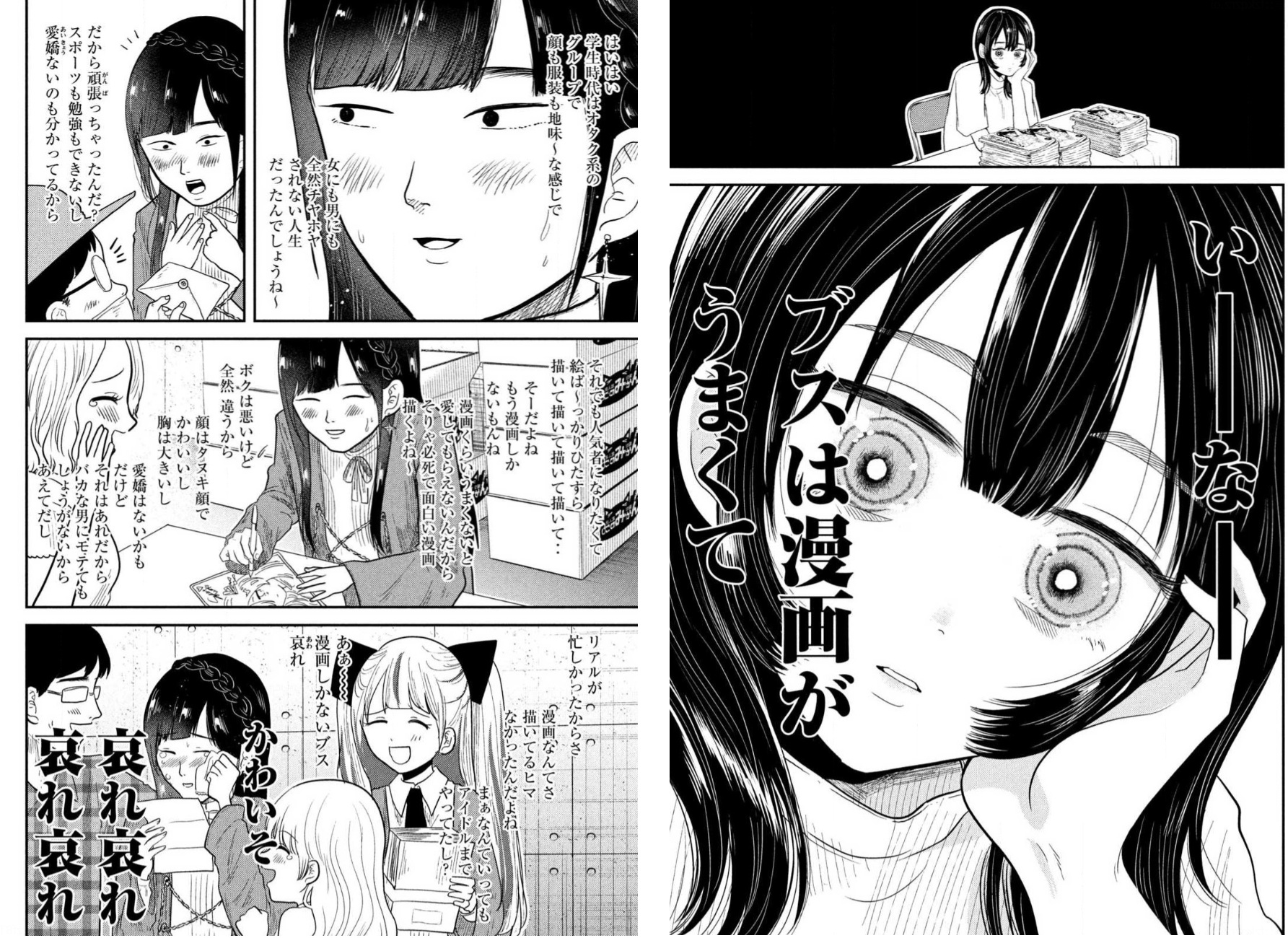 | … | 11525/11/16(日)08:33:02No.1373068632+漫画上手いブスの方が綺麗に手入れされた黒髪に描いてるのも良い描写だ |