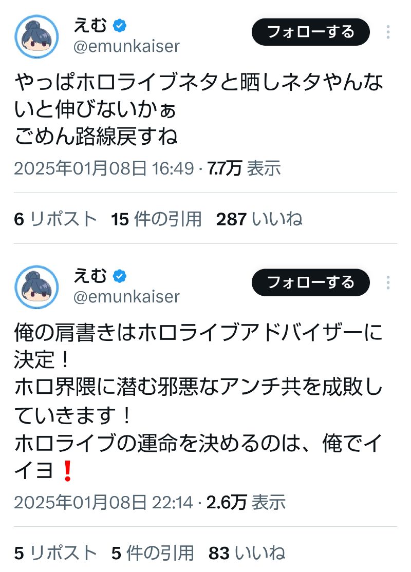 | … | 325/11/17(月)19:46:29No.1373561502そうだねx10対象者は、所属タレントの生命・安全にかかわる深刻な懸念を想起させる画像を捏造し、またSNSサービス上で所属タレントに関する虚偽の事実を流布することで、所属タレントの名誉権および当社の著作権・営業権を侵害する行為を行っていました。これらの行為について、裁判所からも権利侵害が認められ、個人の特定に至りました。 |