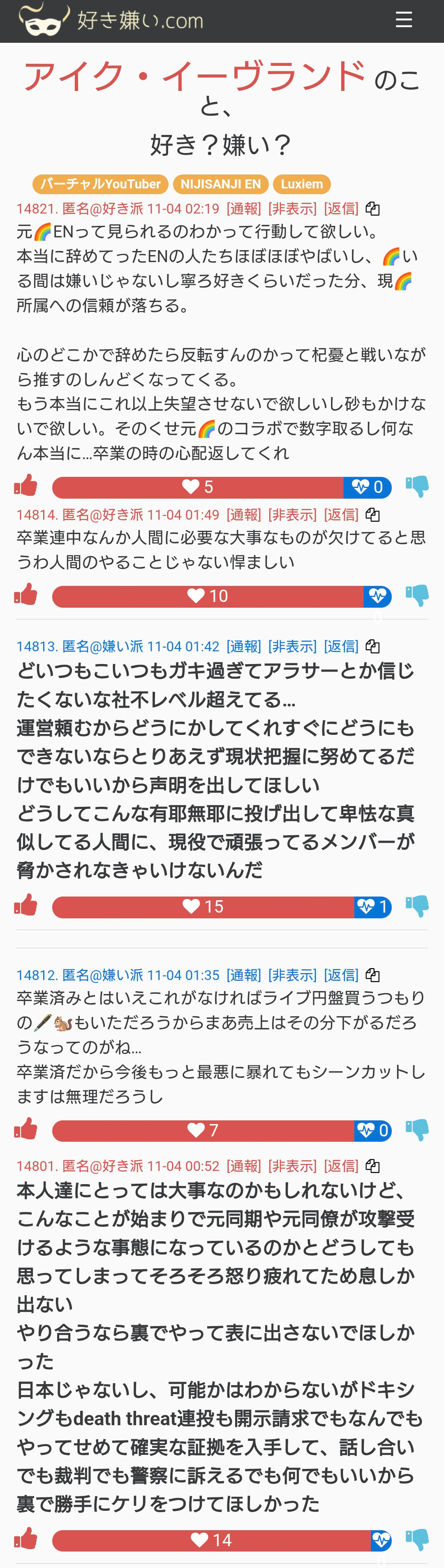 | … | 74525/11/25(火)11:53:09No.1376047178そうだねx8>落語家とか他の男と絡んだときは何にもなかったからにじと絡んでんの見たくないだけなんだよね |