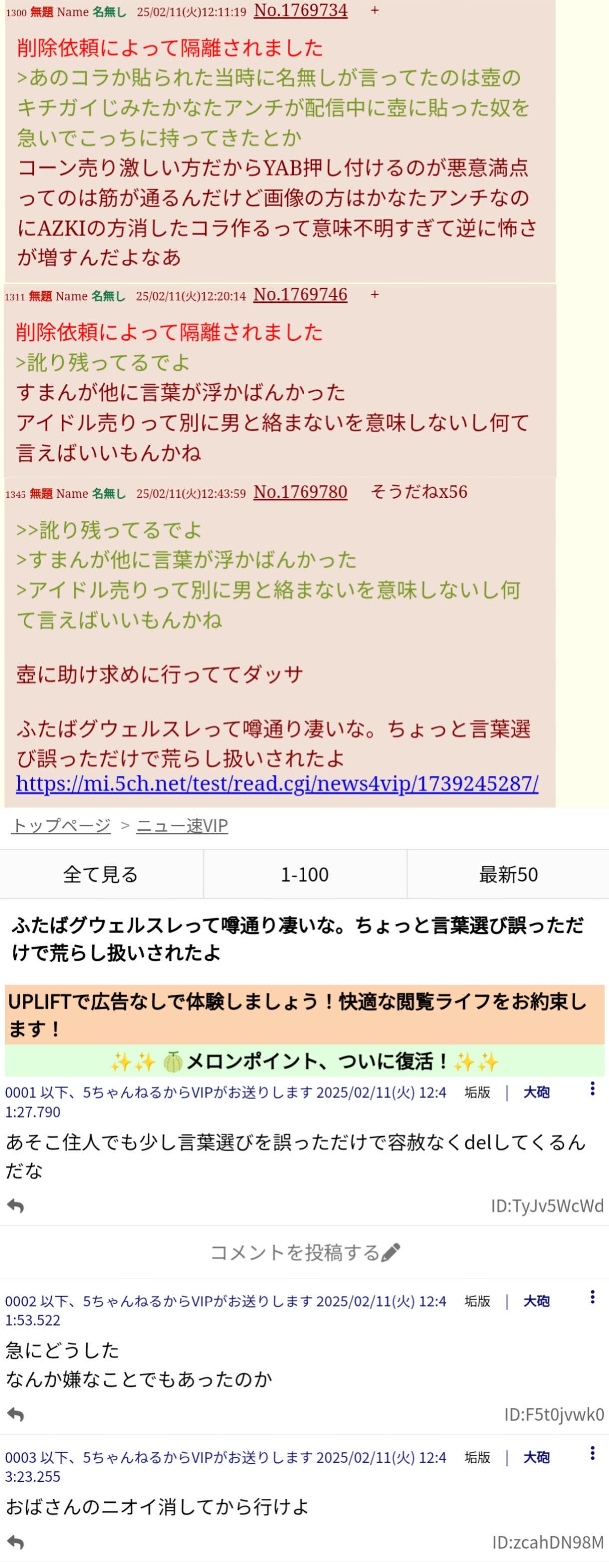 | … | 625/11/25(火)10:07:50 ID:OXbziTNINo.1376027600そうだねx17削除依頼によって隔離されました |