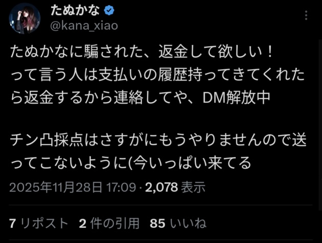 | … | 1025/11/29(土)15:35:19No.1377386555そうだねx3>返金の必要あんのか? |