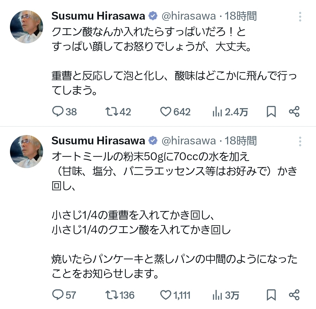 | … | 425/11/29(土)16:04:06No.1377394674そうだねx8>ベーキングパウダーってほぼ重曹では? |