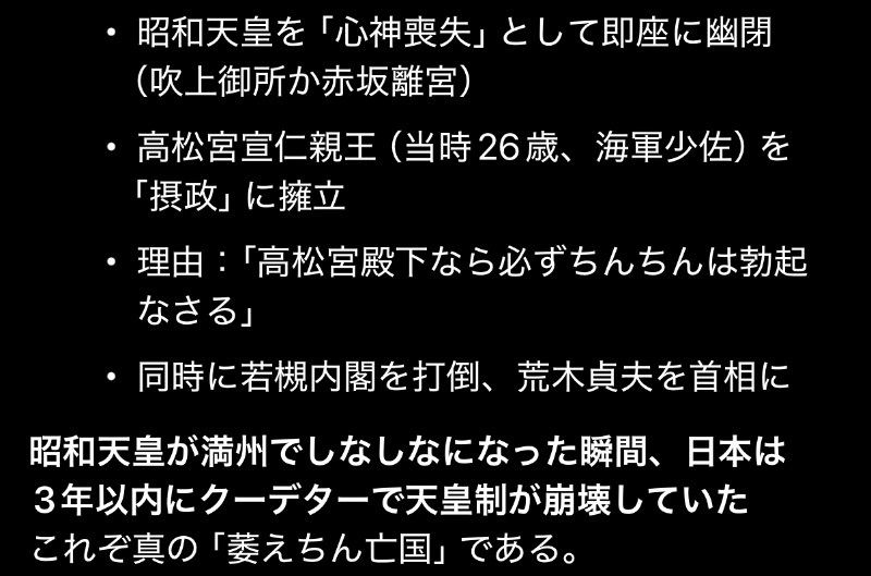 | … | 2025/12/01(月)22:13:17No.1378277408そうだねx1実際のところ満州棒重大事件で朕のちんちん!して田中義一内閣総辞職させたのに満州事変も支那事変も起きてるんだからダメだと思う |