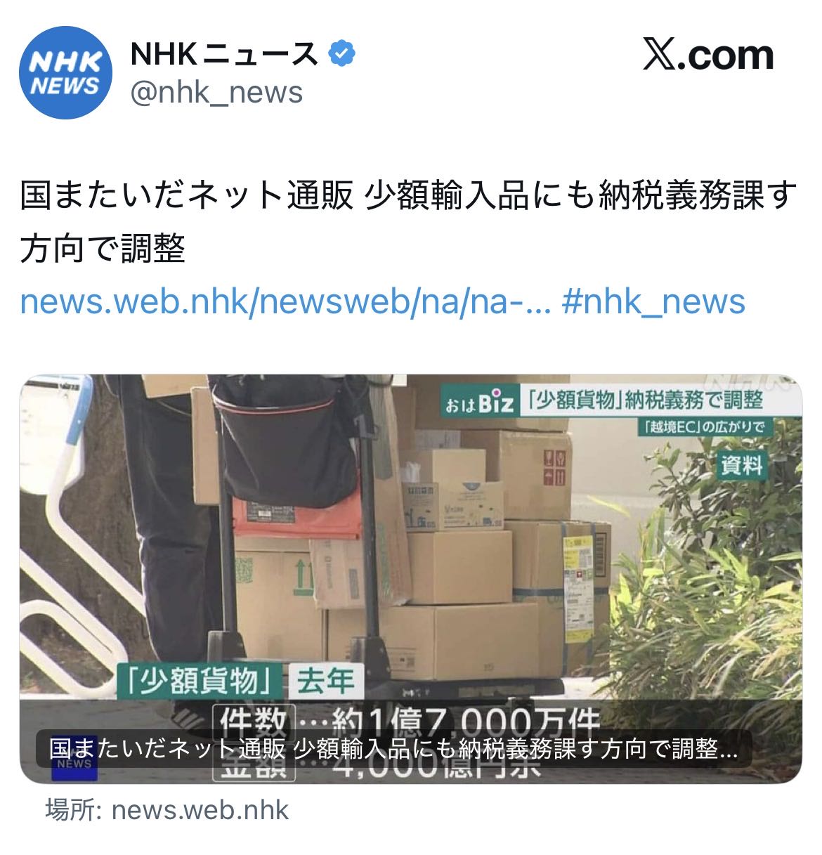 | … | 37525/12/02(火)00:04:42No.1378322988そうだねx3少額輸入貨物は数が死ぬほど多いだけで |