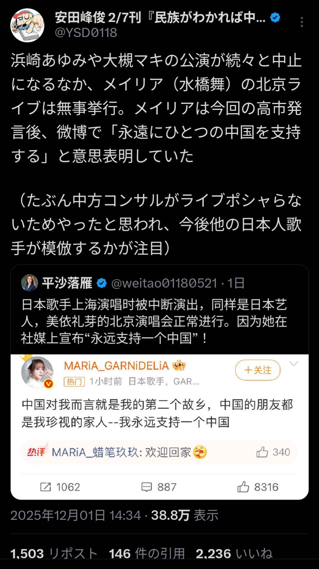 | … | 3325/12/02(火)09:52:21No.1378395076+ひとつの中国を支持する |