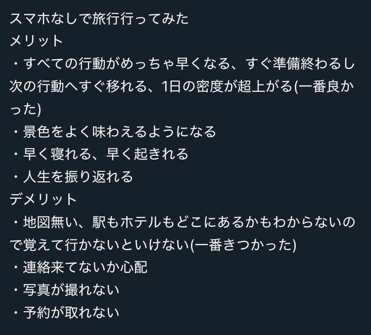 | … | 8225/12/03(水)21:51:19No.1378930582+旅行じゃなくても日常生活でスマホチラ見減らせばいいんじゃね? |
