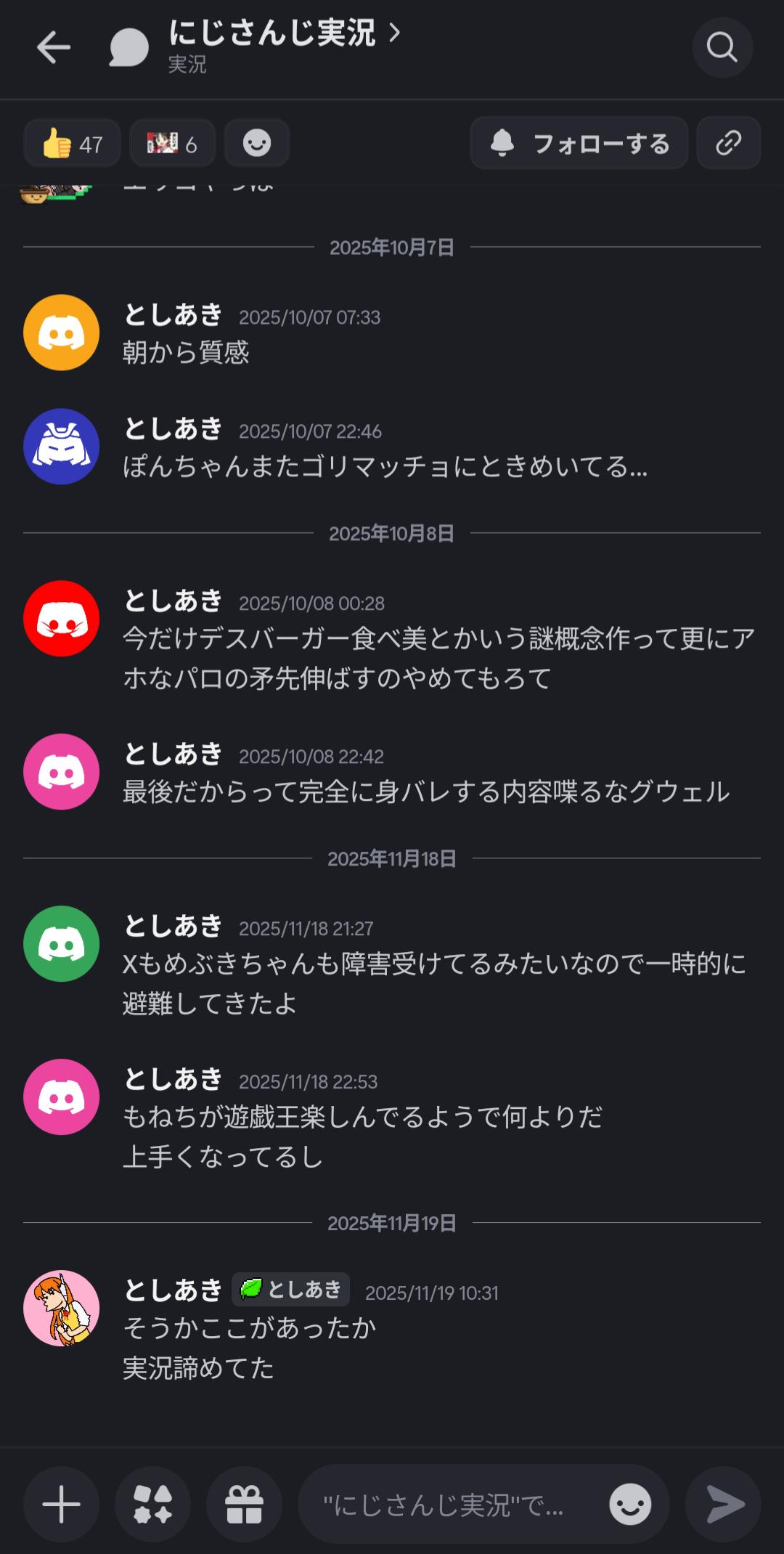 | … | 63725/12/08(月)12:52:10No.1380390273そうだねx1>まあ他所からのお客様でimgmayV板でにじ信が何をしてきたか知らないピュアなファンならなんで語っちゃ駄目なんだよ…ってなるのかもしれないな |