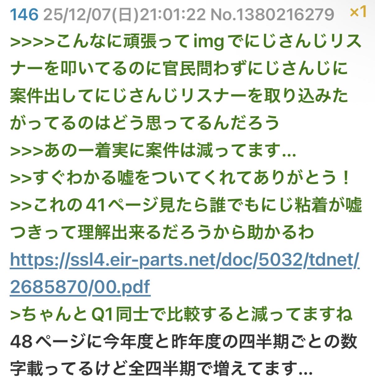 | … | 725/12/08(月)18:23:21No.1380459304そうだねx3>叩ければ真偽とかどうでもよくない? |
