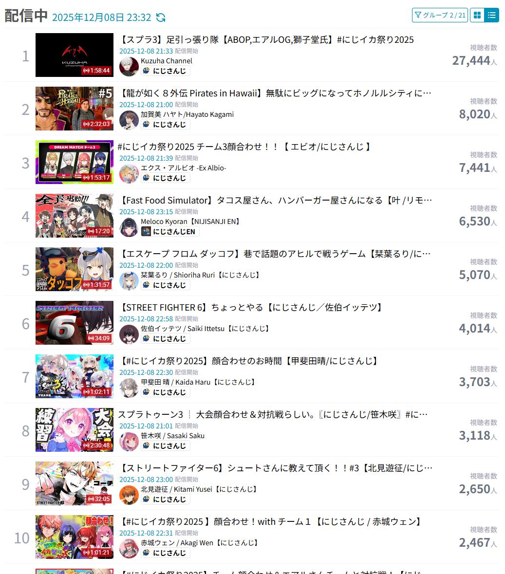 | … | 8725/12/09(火)00:13:33No.1380604697そうだねx7にじさんじも配信中やんけ… |
