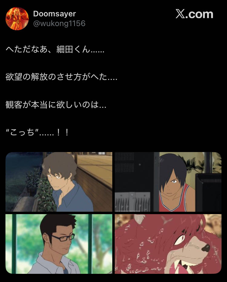 | … | 1225/12/10(水)08:35:06No.1380946189+>勝手な印象だけどあんまり細田の性癖わかんねぇんだよな滲み出してこないと言うか |