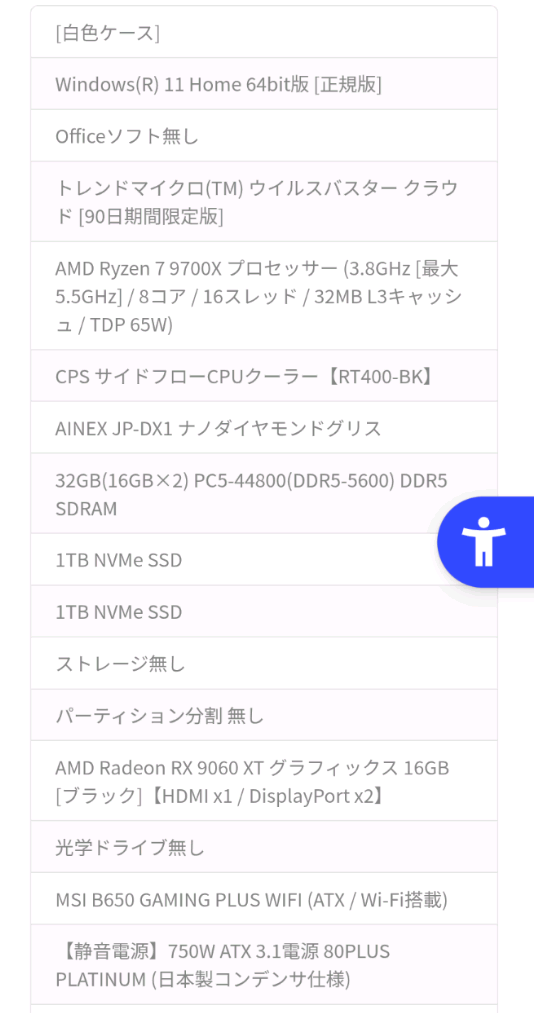 | … | 6325/12/11(木)23:36:51No.1381512426+8月だったらFroに9700X 32GB 2TB 9060XT 19万てのがあったんだがな…マザボA620だけど |