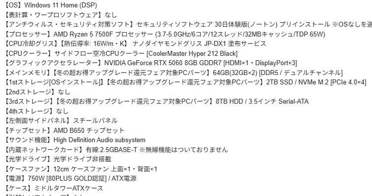 | … | 65325/12/12(金)00:45:45No.1381535794+https://shop.tsukumo.co.jp/goods/0840006671329 |
