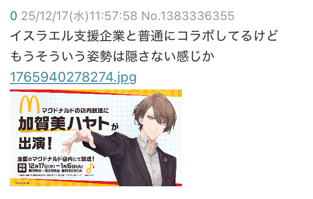 | … | 425/12/17(水)12:38:02No.1383347376そうだねx8>そもそもV粘着やゲハもある種まさはるみたいなもんだし |