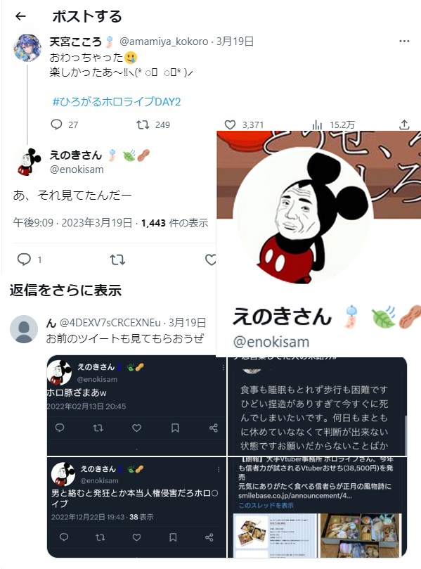| … | 2725/12/22(月)16:46:35No.1385085363そうだねx3>メでホロ粘着やってるのを少し愚痴ってる扱いってにじリスの認知どうなってんの |