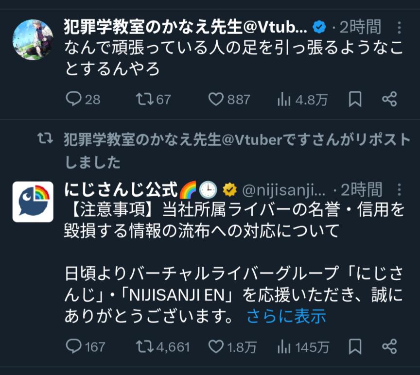| … | 8025/12/23(火)12:28:27 ID:AXCwVdVoNo.1385353707そうだねx6>ホロライブやにじさんじみたいな所を大手出版社とすると |