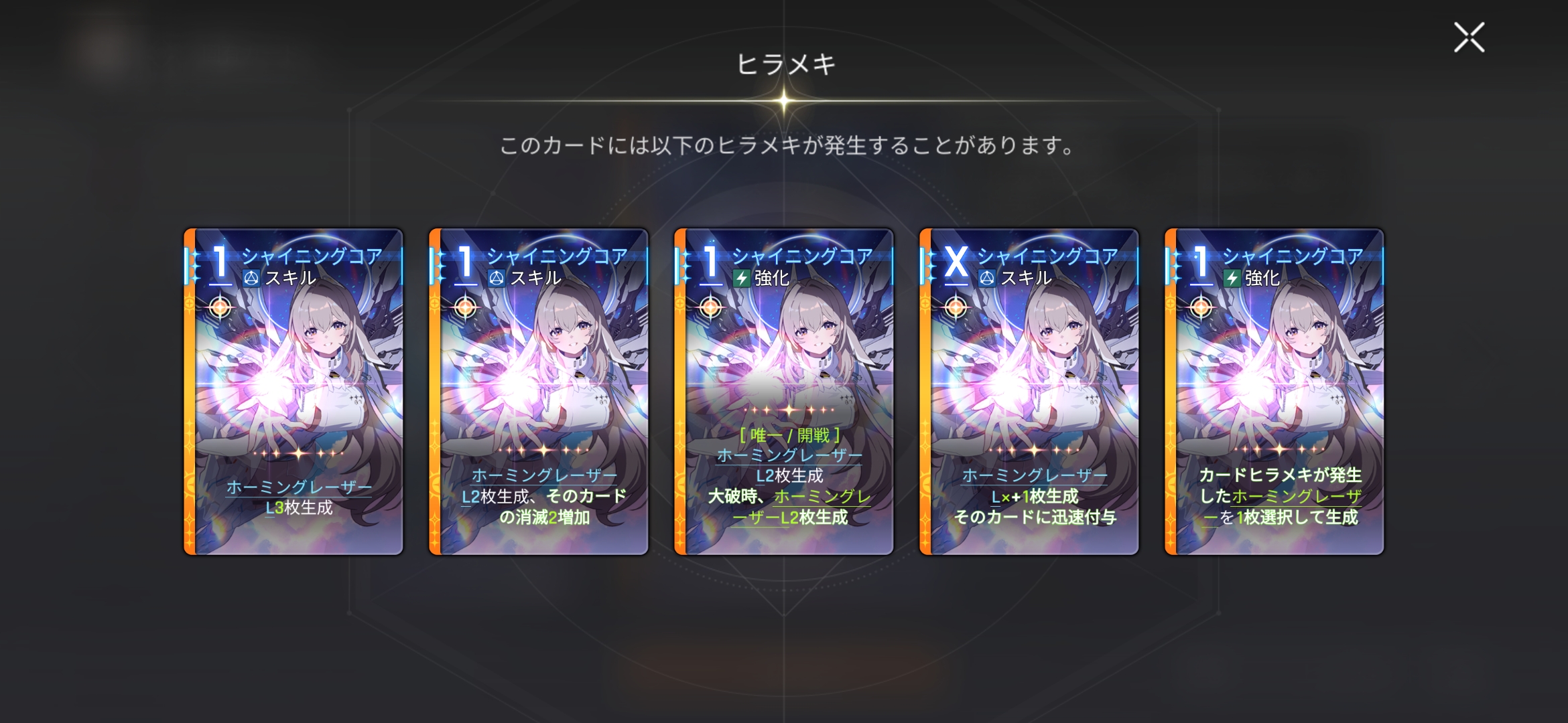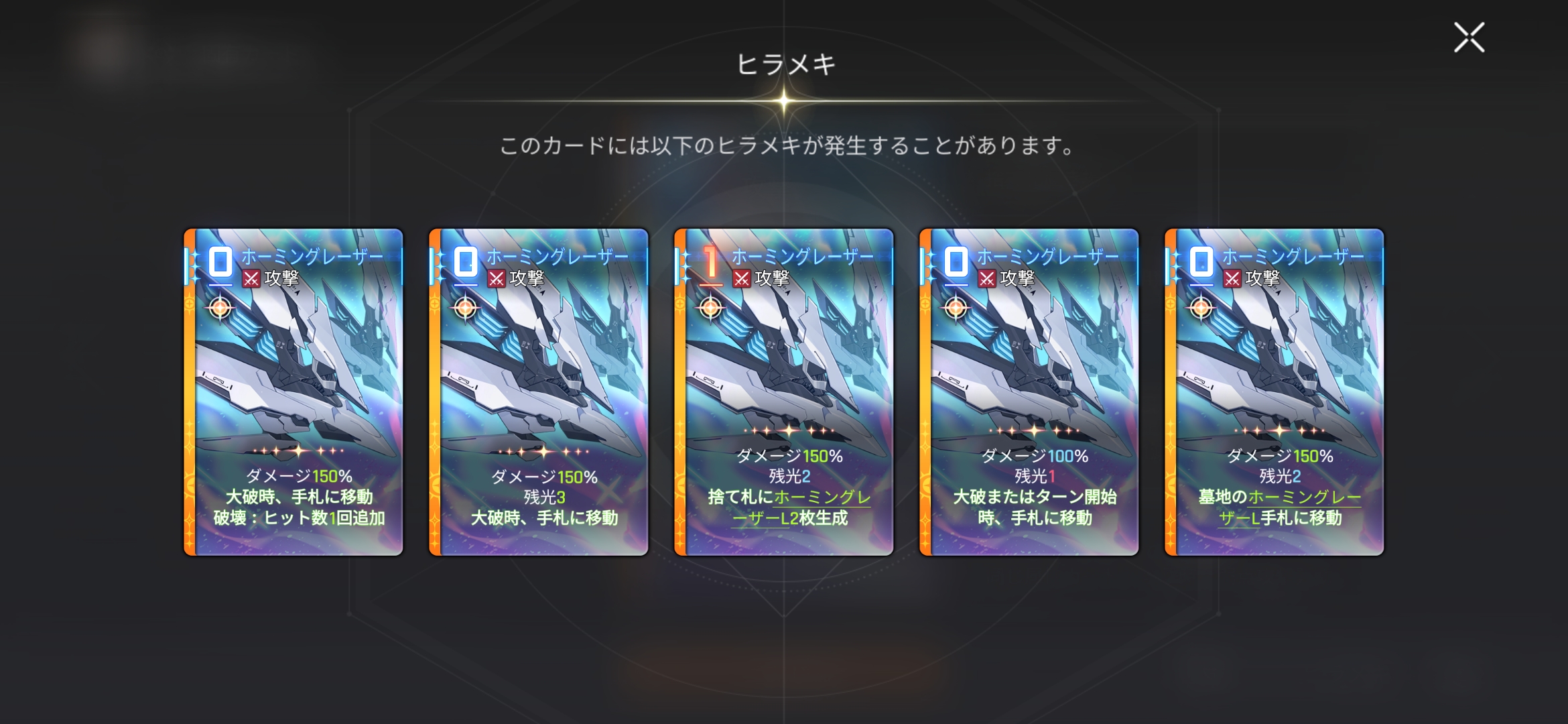 | … | 7225/12/24(水)17:17:23 ID:vkY2ILTwNo.1385719691+ノーマルレーザーは開始手札移動安定感あるな |