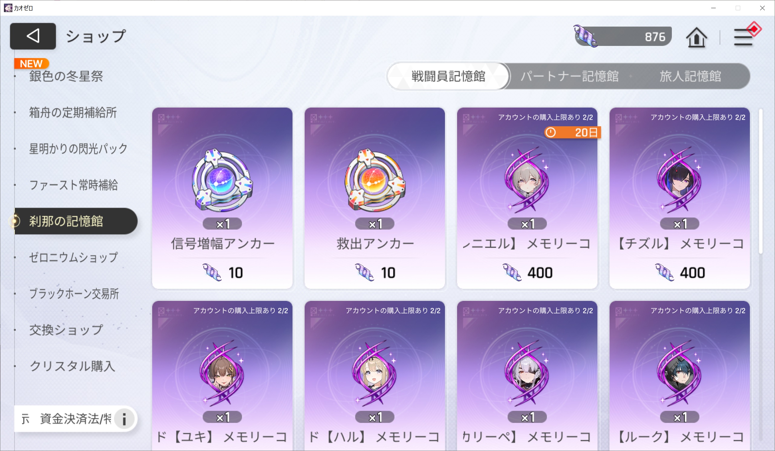 | … | 7725/12/24(水)17:18:21 ID:eufMndRMNo.1385719875+回顧録の戦闘員レベル20を1回達成って全員20以上にしてたら詰むやつ? |
