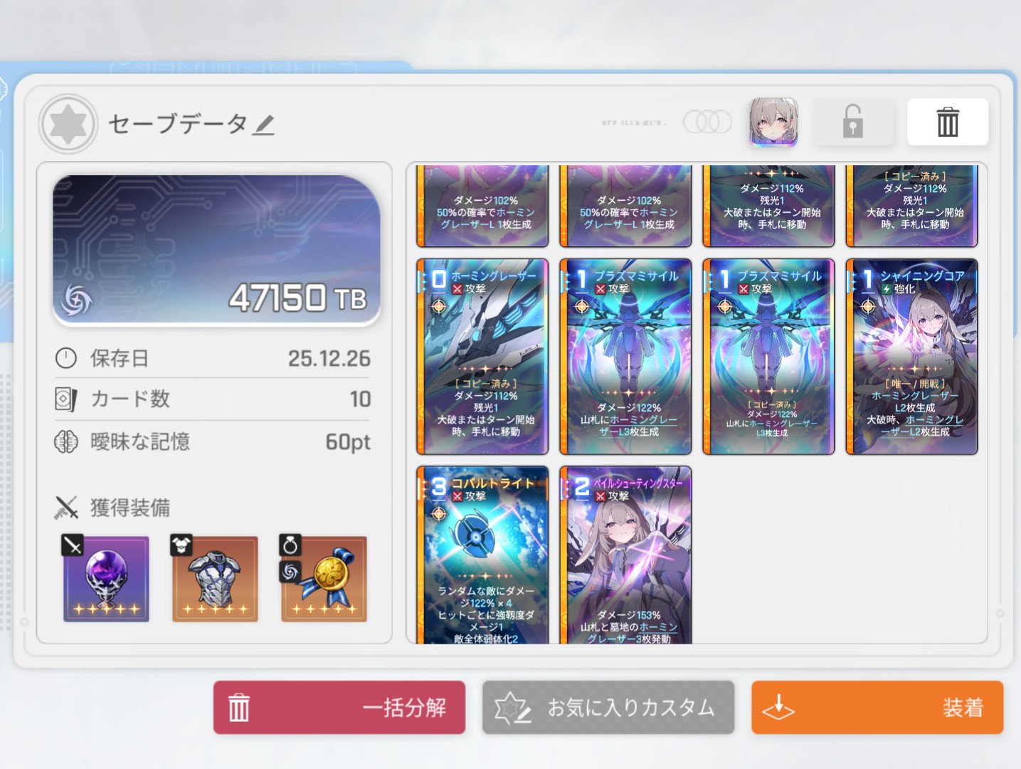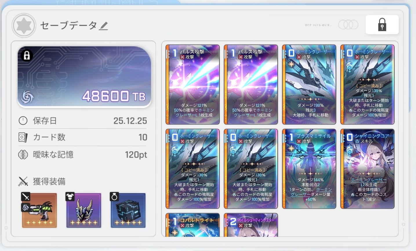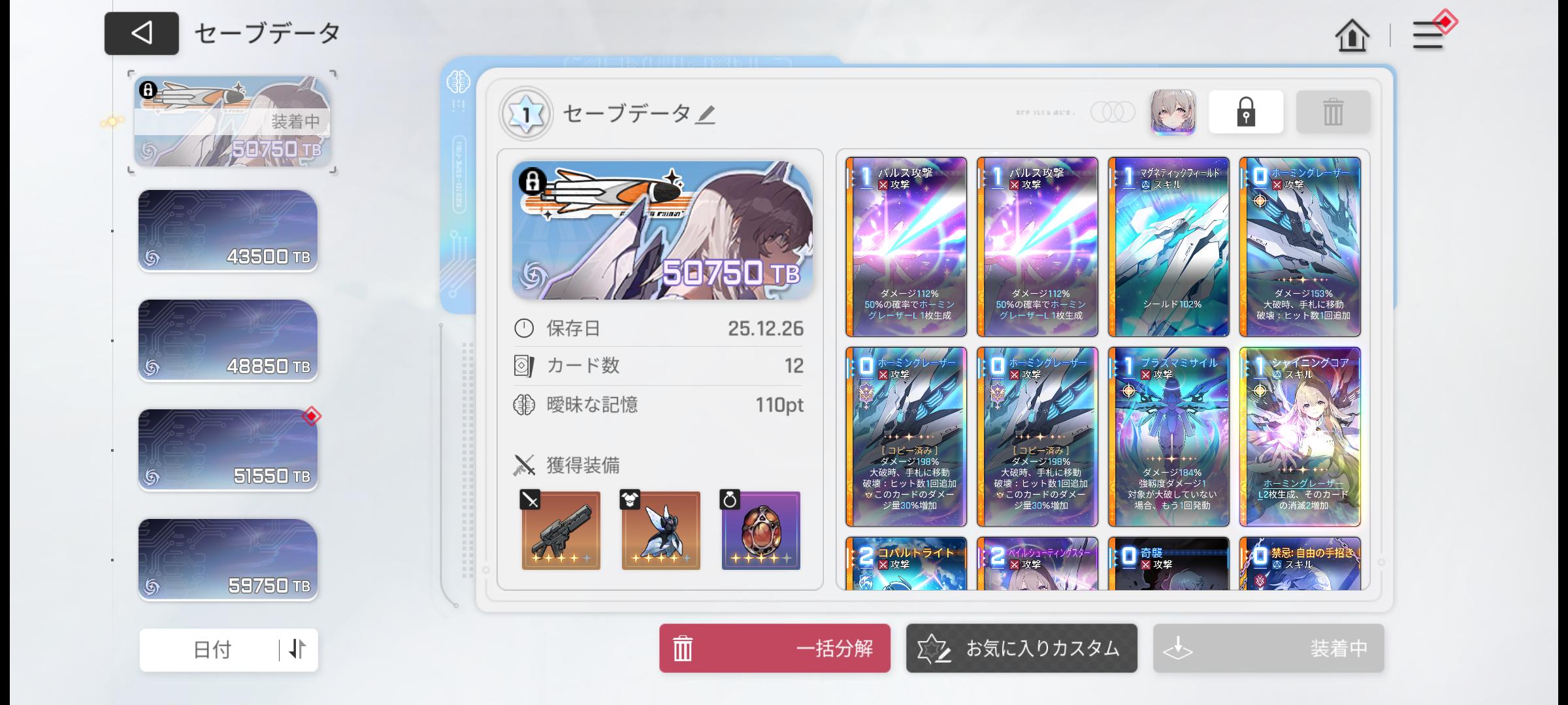 >ターン開始時と大破時手札が使いやすいけど残光3のやつも普通に欲しい…残光大事でございます