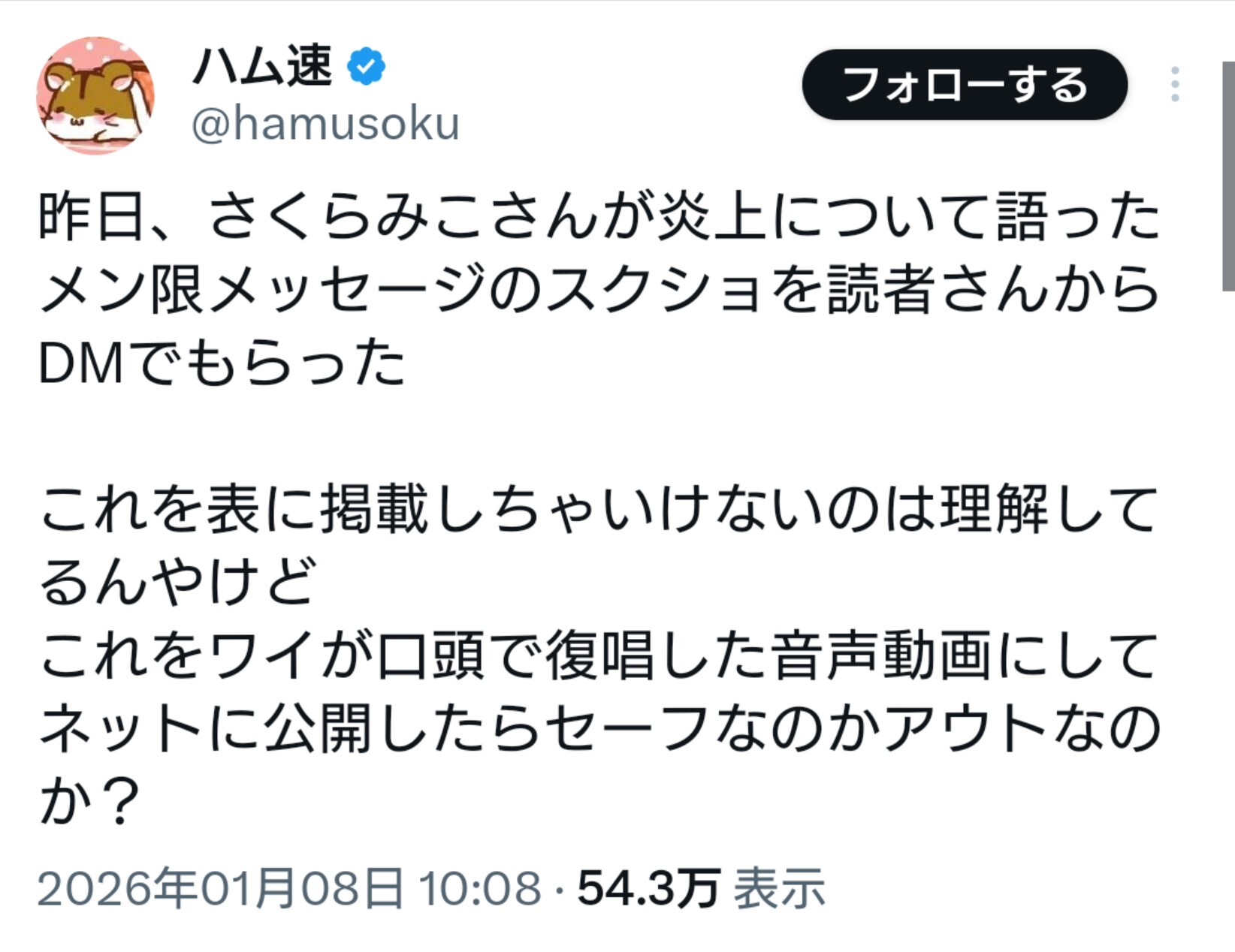 | … | 45726/01/08(木)12:36:46No.1390524889そうだねx7謝ったから炎上は事実!と結局謝ってない!の二つを |