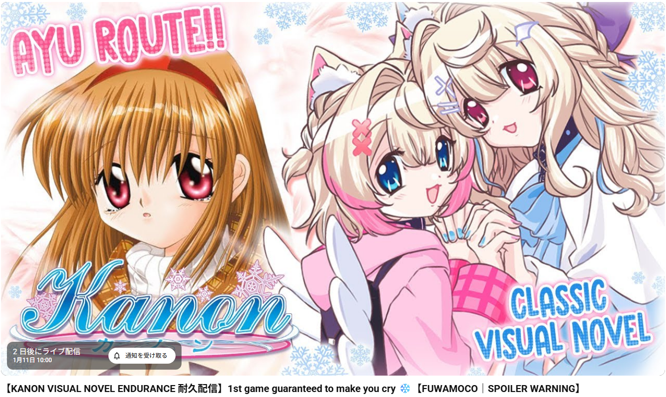 | … | 2326/01/08(木)17:19:17No.1390591261+Kanonやれてないしフワモコで履修するか… |