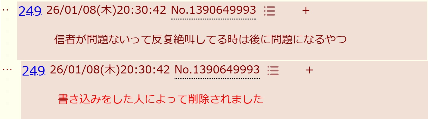 | … | 1126/01/08(木)19:48:43No.1390634390+何が大丈夫なやつなの? |